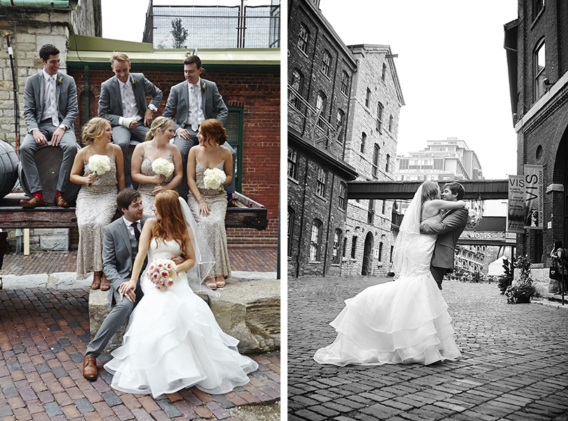 The Fermenting Cellar in Toronto’s historic Distillery District is a stunning wedding venue, a cavernous, industrial space that makes a fantastic contrast with all the beauty and finery of a wedding. Erin and Gord had both their ceremony and reception at this venue, with photos around the Distillery District.