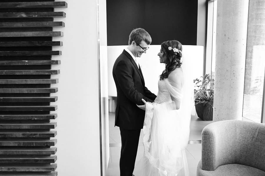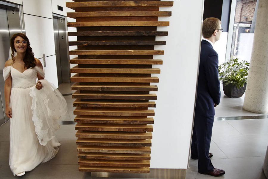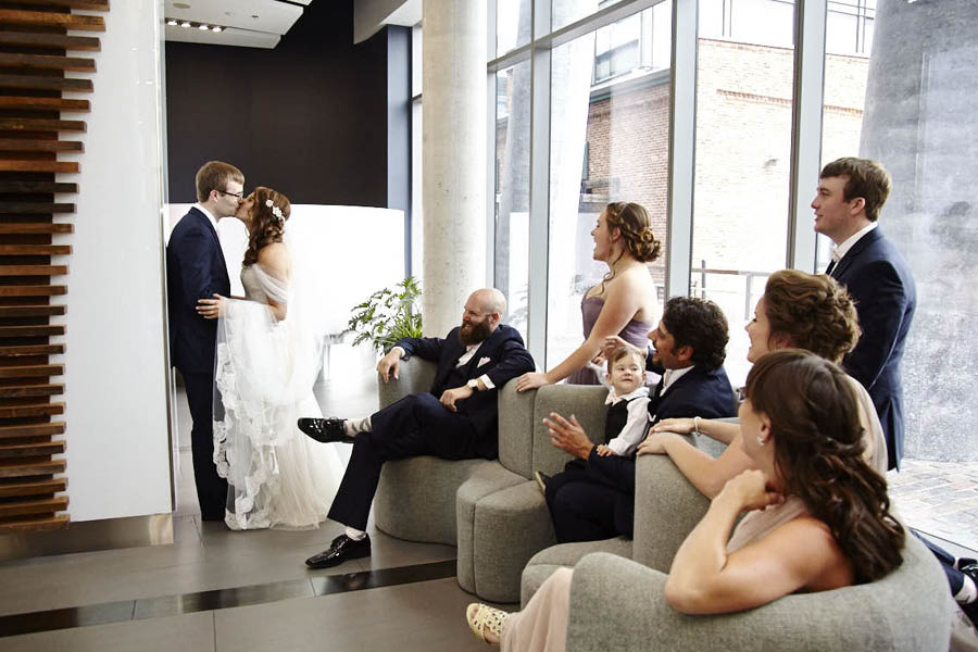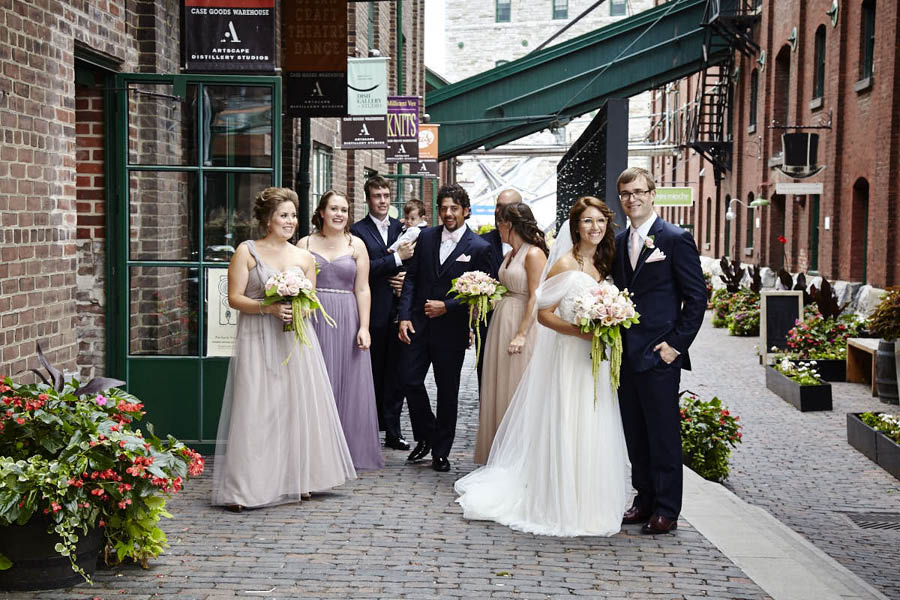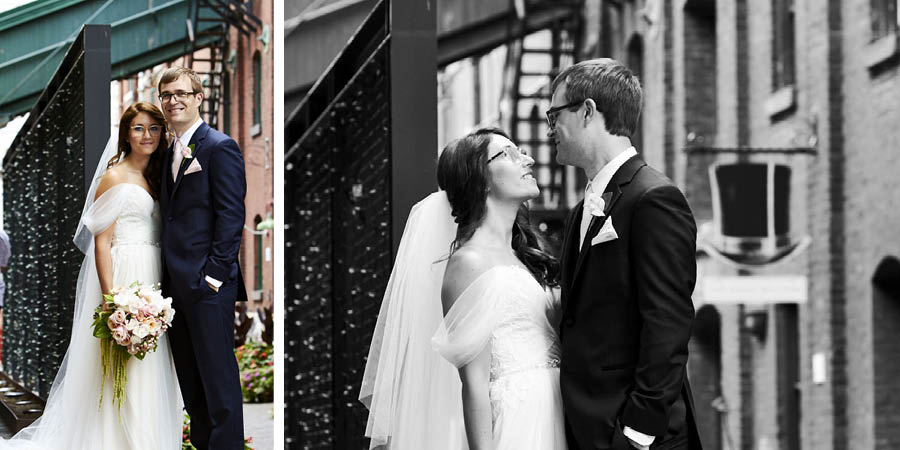 Rebecca and Troy had their wedding ceremony and reception in the stunning Fermenting Cellar, in Toronto’s Distillery District. Troy’s Father built the chuppa which fit perfectly with the industrial wedding venue, and the reception decor was some of the most impressive I’ve seen. Wedding photos were around the Distillery District. Congratulations!